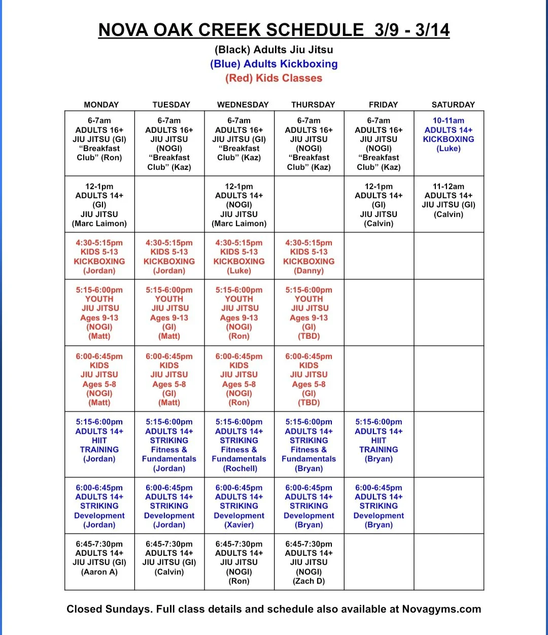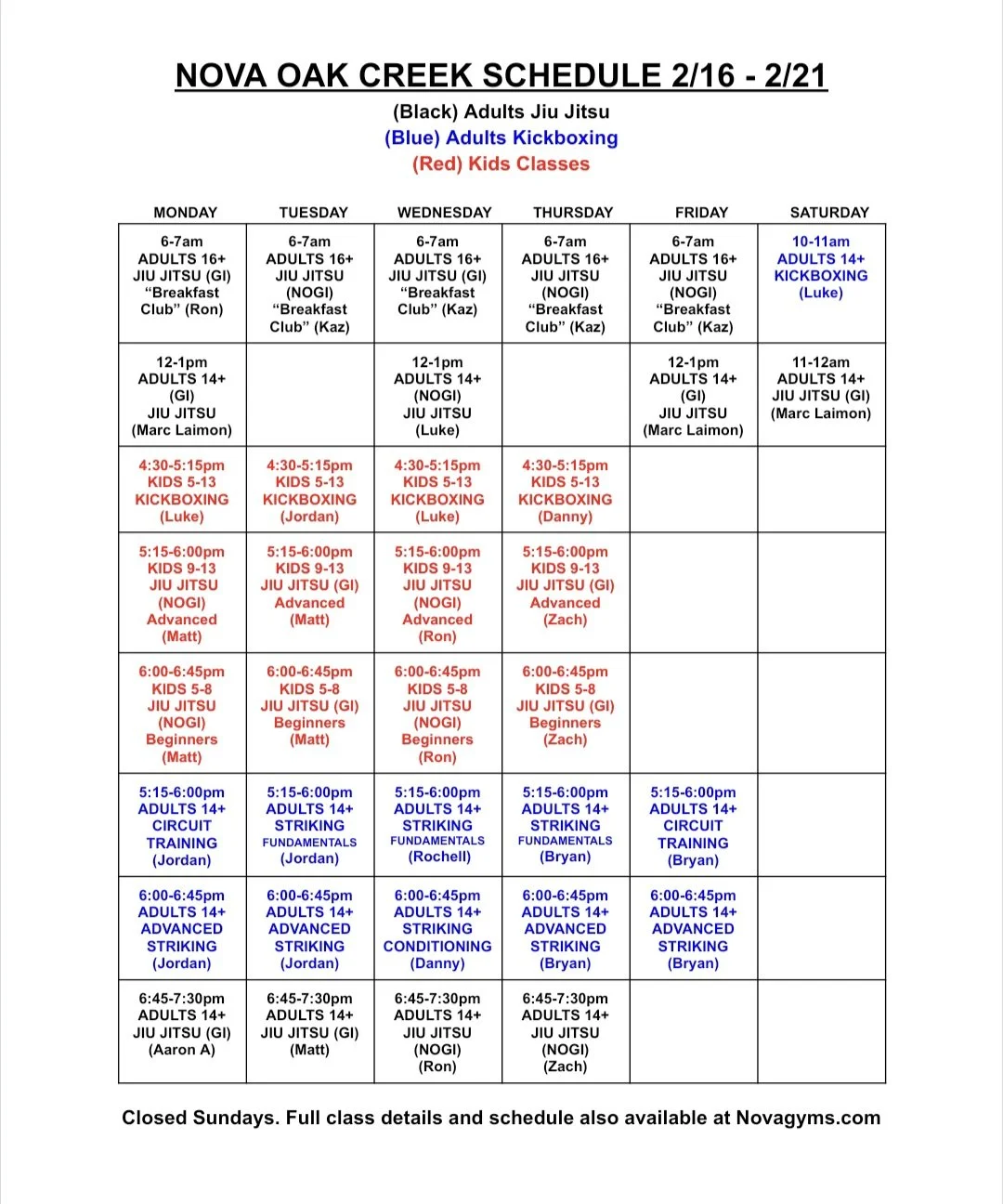 One of the most common reasons Nova Gyms is popular is because we offer classes for all skill levels: from the total beginner, to the future Ultimate Fighter Contender (UFC), and everyone in between. There something at this gym for everyone!